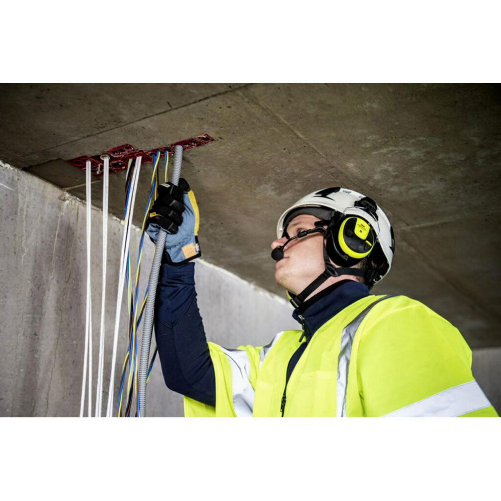 Hørselvern med hodebøyle, Bluetooth og støydempende bommikrofon som kobles til mobiltelefonen din for håndfrie samtaler og streaming i støyende omgivelser. Nivåavhengig funksjon som gjør det mulig å høre lyder i omgivelsene.