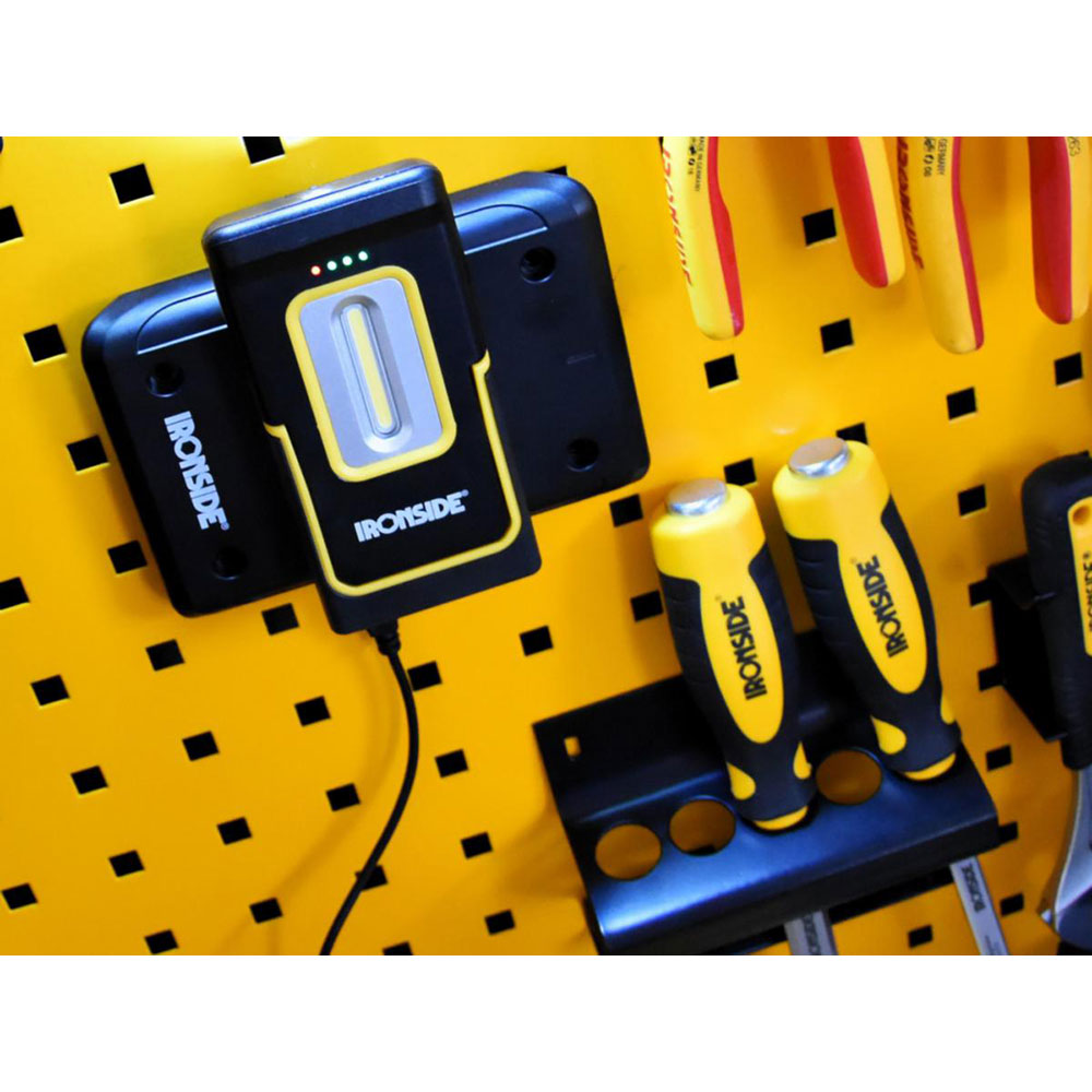- Lampen kan festes med både magnet (bak og nederst) og krok (uttrekkbar).