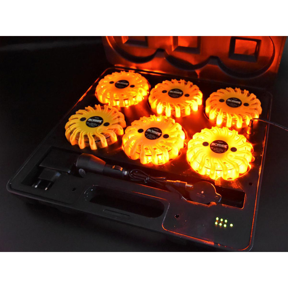 - Lampene har magnetfeste, 16 LED og 9 forskjellige lysfunksjoner: 2 forskjellige roterende lys, fast lys maks, fast lys økonomi, 2 LED fast lys, 4 LED fast lys, enkelt blitslys, veksellys, SOS.