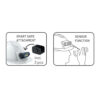LED-arbeidslyset er designet med to forskjellige lysfunksjoner i én: en flomlysvinkel som lyser opp hele arbeidsområdet, og en fokusert lysvinkel for inspeksjon eller bruk på lang avstand. Den har også en berøringsfri sensorfunksjon som lar deg enkelt slå lampen av og på ved å bare vifte med hånden foran hodelykten. Denne funksjonen lar deg aktivere lampen selv når du bruker tykke hansker, og forhindrer at du berører bryterknappen med skitne hender. For å forhindre utilsiktet aktivering krever sensoren en dobbel bevegelse for å aktiveres. I tillegg er lampehodet fleksibelt og kan justeres for å få best mulig lysvinkel under arbeid.